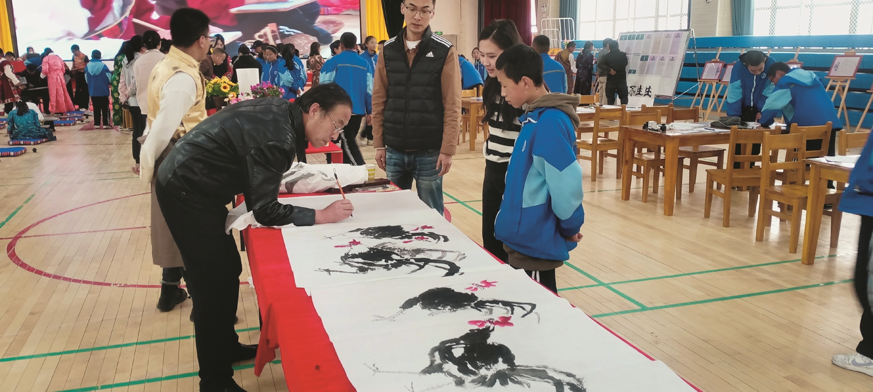 活動為拉薩市柳梧初級中學(xué)愛好書法的師生提供了一個(gè)展現(xiàn)自我價(jià)值的平臺,為充分展現(xiàn)中國書畫藝術(shù)魅力、繼承和弘揚(yáng)傳統(tǒng)的國粹文化藝術(shù),藝術(shù)家們揮毫潑墨,現(xiàn)場演繹國畫和書法經(jīng)典,以提升廣大師生的藝術(shù)修養(yǎng)和審美情趣,激發(fā)大家研學(xué)書法的興趣和愛好。