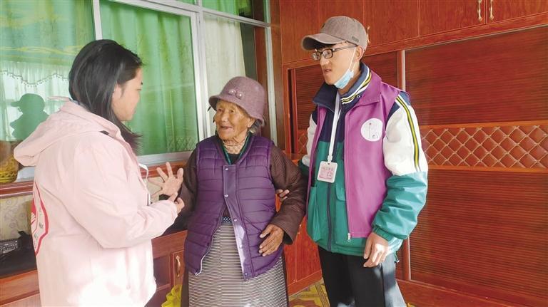 旦羅(右一)參與關(guān)愛空巢老人公益活動。圖由受訪者提供