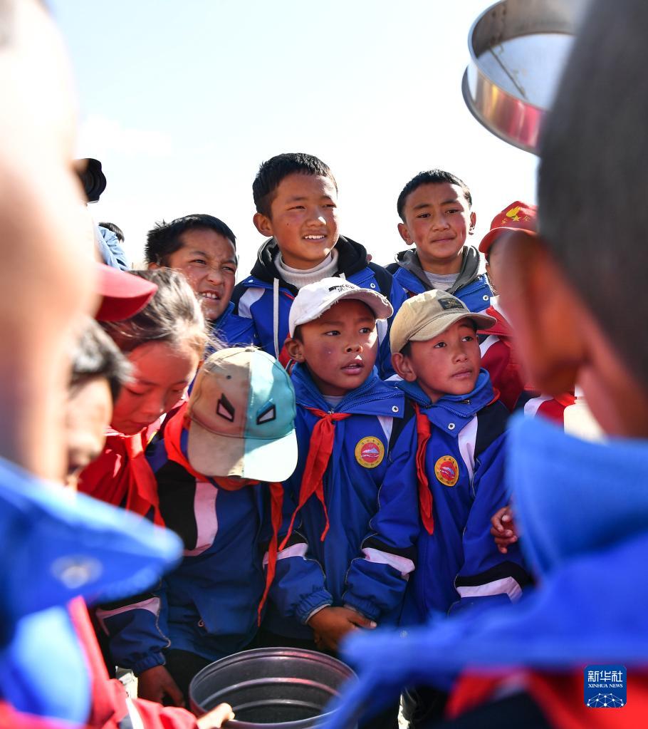 5月15日,扎西宗鄉(xiāng)完全小學(xué)的學(xué)生們?cè)谥榉逭緟⒂^學(xué)習(xí)。新華社記者 晉美多吉 攝
