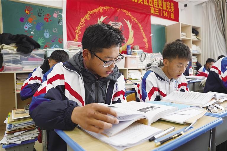 “叮鈴鈴”……隨著下課鈴聲響起,教室瞬間“熱鬧”了起來。有的同學(xué)走出教室活動(dòng)久坐的身體、有的同學(xué)拿出習(xí)題冊和同桌小聲地討論、有的同學(xué)向老師請教不明白的知識點(diǎn)……清風(fēng)拂過,暖暖的陽光照在這些青春的身影上,演繹出一首屬于青春的奮斗頌歌?!艾F(xiàn)在是最緊要的關(guān)頭,必須把全部精力投入到學(xué)習(xí)中,爭取多掌握一些知識點(diǎn)?!备呷?2班學(xué)生索朗旦增說,“我的目標(biāo)是西南政法大學(xué),希望通過自己的努力能實(shí)現(xiàn)這個(gè)夢想?!?/p>