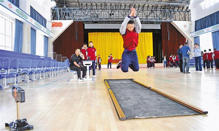 圖為北京第二外國語學(xué)院拉薩附屬中學(xué)的學(xué)生進(jìn)行立定跳遠(yuǎn)測試。記者 潘多 攝