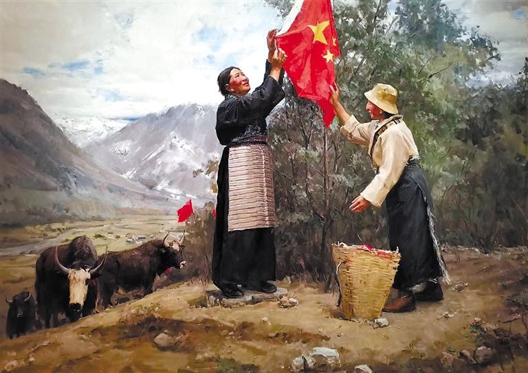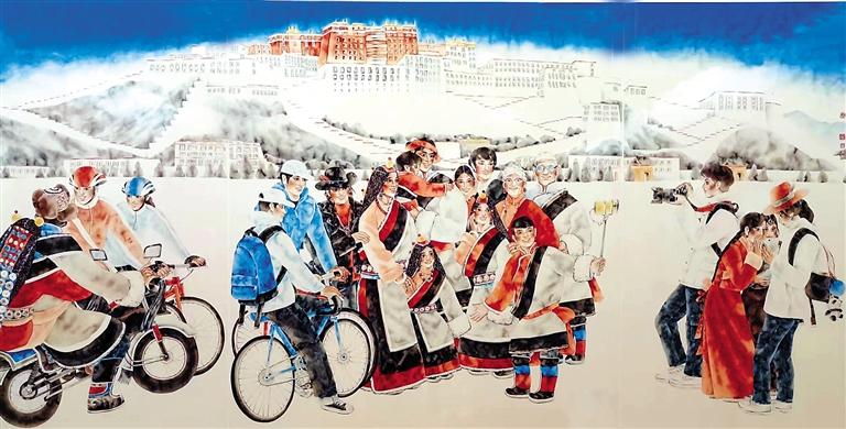 隨著一系列支持政策的持續(xù)推進和西藏各族兒女的團結(jié)奮斗,西藏的經(jīng)濟發(fā)展和民生水平都得到了大幅度提升。同時,關(guān)注西藏發(fā)展現(xiàn)實、進行美術(shù)創(chuàng)作的藝術(shù)家日漸增多,一件件優(yōu)秀美術(shù)作品應(yīng)運而生,并且在全國重要展覽中精彩呈現(xiàn),向人們?nèi)?、立體地展現(xiàn)了新時代西藏人民生活的美好圖景。2022年秋季在中國美術(shù)館展出的“第13屆中國藝術(shù)節(jié):全國優(yōu)秀美術(shù)作品展覽”中,有大量表現(xiàn)西藏民族風(fēng)情和民生發(fā)展題材的美術(shù)作品,從作品構(gòu)思到藝術(shù)表現(xiàn),體現(xiàn)出鮮明的民族文化特色和民生繁榮景象,展現(xiàn)出美術(shù)創(chuàng)作者深植心底的鑄牢中華民族共同體意識創(chuàng)作理念。