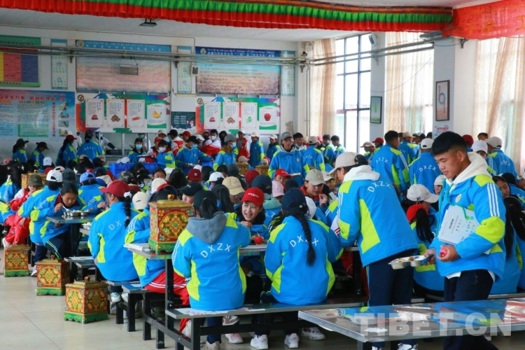 圖為當(dāng)雄縣中學(xué)的學(xué)生在吃午餐 攝影:旦曲