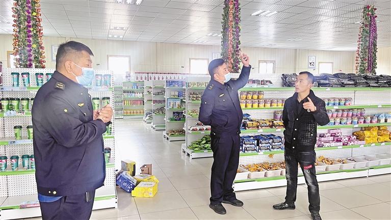 為拉薩市市場(chǎng)監(jiān)管局執(zhí)法人員在學(xué)校附近的商超進(jìn)行檢查。記者 央金 攝