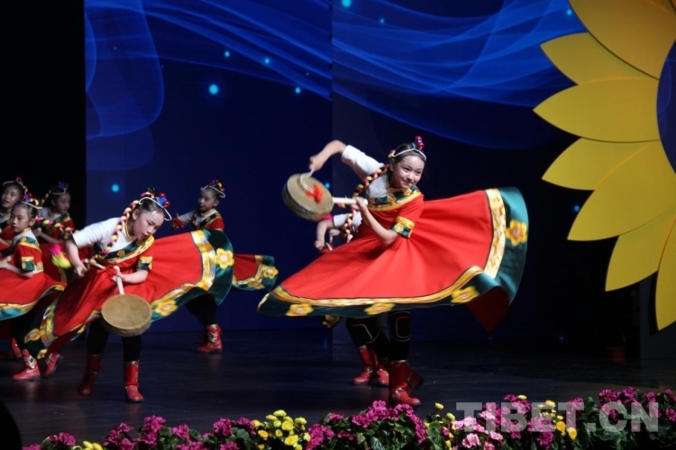 圖為熱巴舞《格?;ㄩ_向未來(lái)》表演現(xiàn)場(chǎng) 攝影:德吉卓瑪