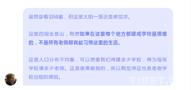 學(xué)生們在學(xué)習(xí)漢語、英語等不同科目的同時(shí),學(xué)校對藏族傳統(tǒng)文化的存續(xù)依然不遺余力,給了孩子們拓展視野的鑰匙,讓他們有機(jī)會探索更寬廣的世界,這些不就是教育的意義嗎?何來“同化”?