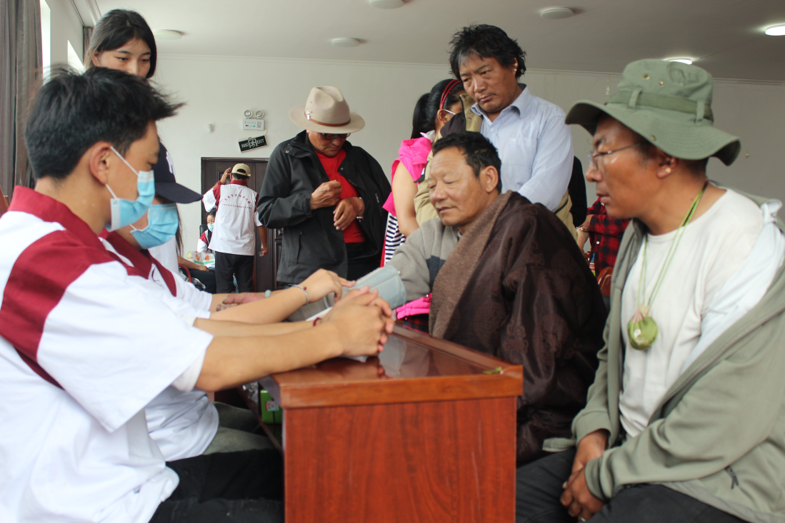 活動期間,“民族團(tuán)結(jié)返鄉(xiāng)實踐團(tuán)”師生先后到森布日高海拔生態(tài)搬遷安置點和那曲駐拉薩辦事處等,與西藏防治艾滋病協(xié)會工作人員共同開展“中醫(yī)藥健康進(jìn)西藏 民族團(tuán)結(jié)我先行”的愛心醫(yī)療志愿服務(wù),為當(dāng)?shù)乩习傩蘸屠细刹块_展針對性的中醫(yī)藥知識宣講,還為大家測血壓、血糖,共同體驗中醫(yī)藥花茶及香囊的制作過程,免費發(fā)放藥物等。