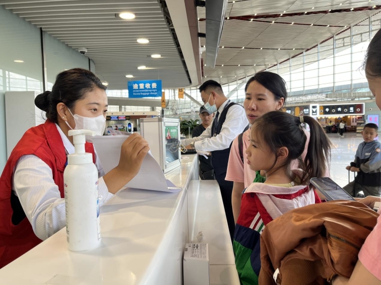 圖為“暑運(yùn)”期間拉薩貢嘎機(jī)場(chǎng)為旅客提供“無陪兒童”服務(wù)
