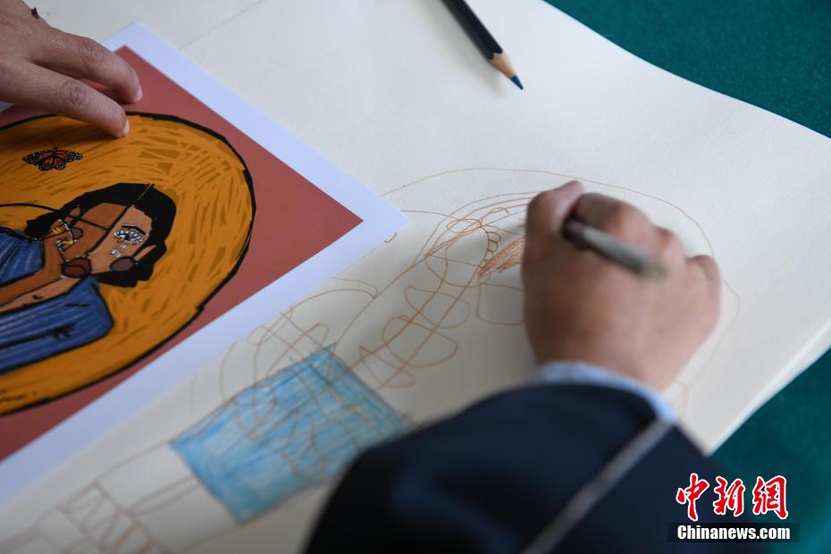 圖為那曲市特殊教育學(xué)校學(xué)生正在畫畫。貢嘎來松 攝