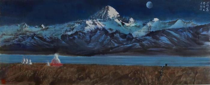 圖為劉洋國(guó)畫(huà)作品描繪的西藏岡仁波齊?!⒀?供圖