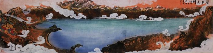 圖為劉洋國(guó)畫(huà)作品描繪的納木錯(cuò)圣象天門景觀。 劉洋 供圖