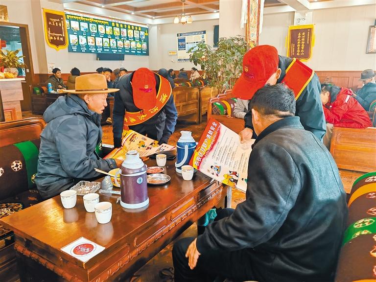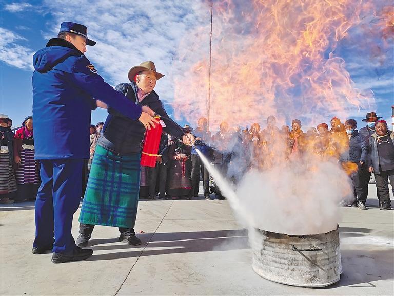 活動中,隊伍各級積極制作藏漢雙語宣傳彩頁、海報、宣傳冊、宣傳袋等“消防禮包”80余萬份,聯動消防志愿者通過“走街串巷”的形式深入轄區(qū)“九小場所”、沿街門店、居民樓院等廣泛發(fā)放,并采取“面對面”宣傳講解、“一對一”互動交流等方式,向廣大群眾傳授防火基本常識,教授如何正確使用滅火器、如何撲救初起火災、如何逃生自救等。在開展宣傳的同時,“火焰藍”和“志愿紅”還進村入戶,幫助群眾查找火災隱患,講解隱患存在的嚴重危害性,切實提高群眾的消防安全意識和自防自救能力。