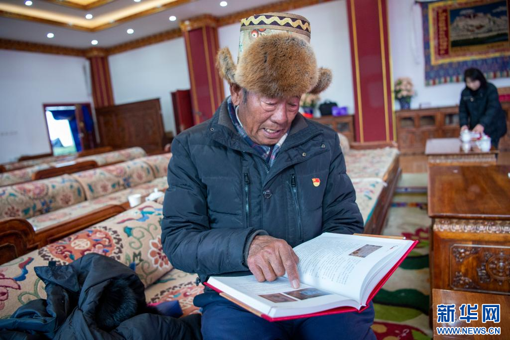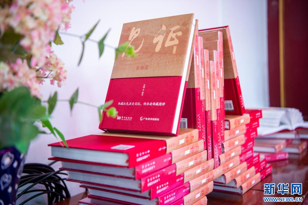 1月19日,在贈(zèng)書儀式現(xiàn)場(chǎng)拍攝的《見證》農(nóng)場(chǎng)篇書籍。新華網(wǎng) 旦增努布 攝