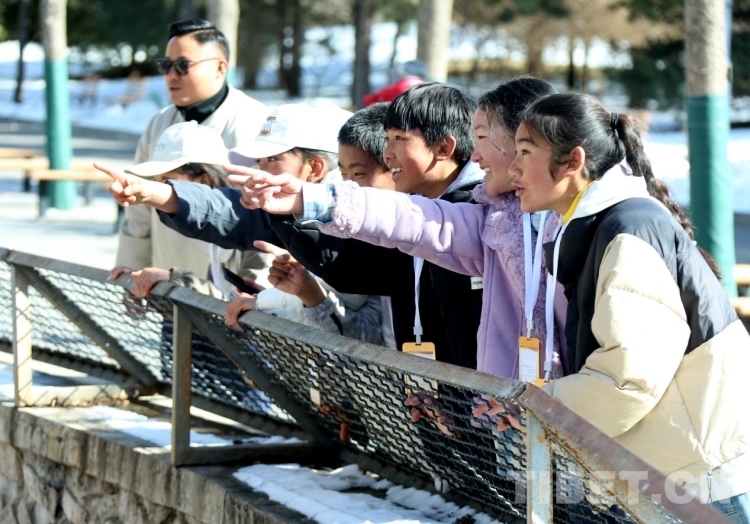 短暫休整后,孩子們從入住的酒店出發(fā)前往研學(xué)第一站——北京動(dòng)物園。冬季的動(dòng)物園稍顯冷清,“營業(yè)”的動(dòng)物并算太多,但似乎完全沒有影響孩子們的心情,東瞅瞅西看看,眼神中總是帶著那份充滿童真的好奇,甚至動(dòng)物園內(nèi)的動(dòng)物雕像都能吸引他們討論一會(huì)。