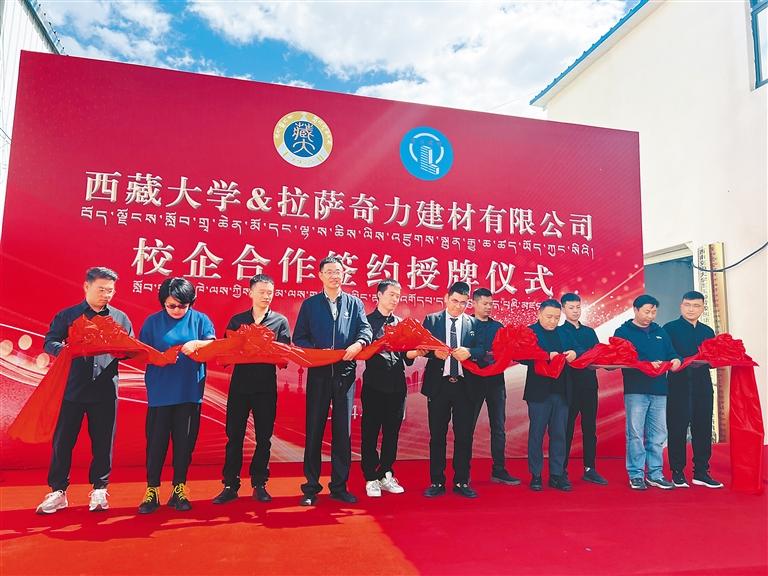 圖為西藏大學與拉薩奇力建材有限公司簽訂合作協(xié)議并剪彩。記者 央金 攝
