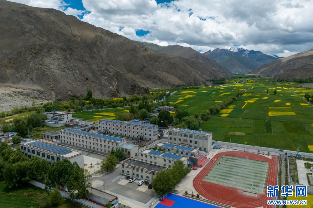 6月21日拍攝的乃東區(qū)亞堆鄉(xiāng)小學(xué)全貌(無人機(jī)照片)。新華網(wǎng) 旦增努布 攝