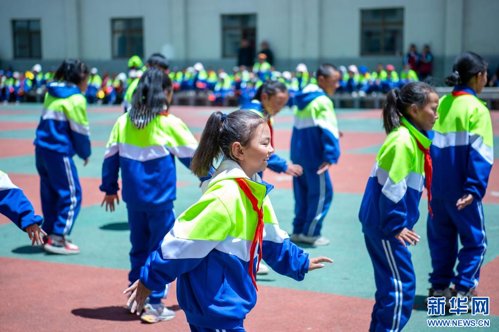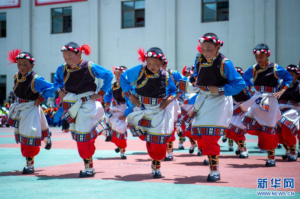 6月21日,乃東區(qū)亞堆鄉(xiāng)小學(xué)的學(xué)生在表演節(jié)目。新華網(wǎng) 旦增努布 攝