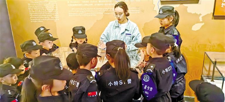 圖為警娃們?cè)诎⒗锏貐^(qū)博物館參觀。