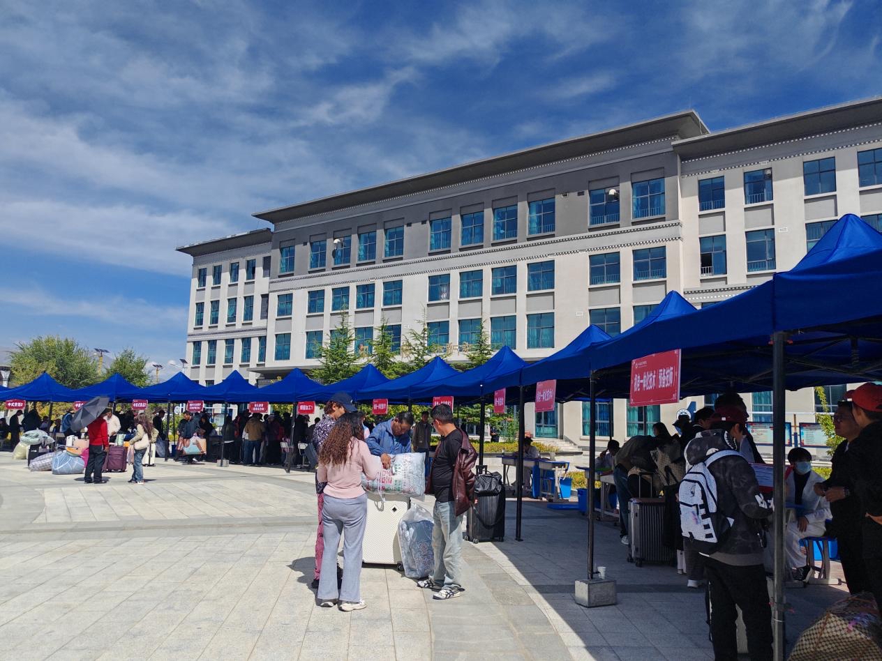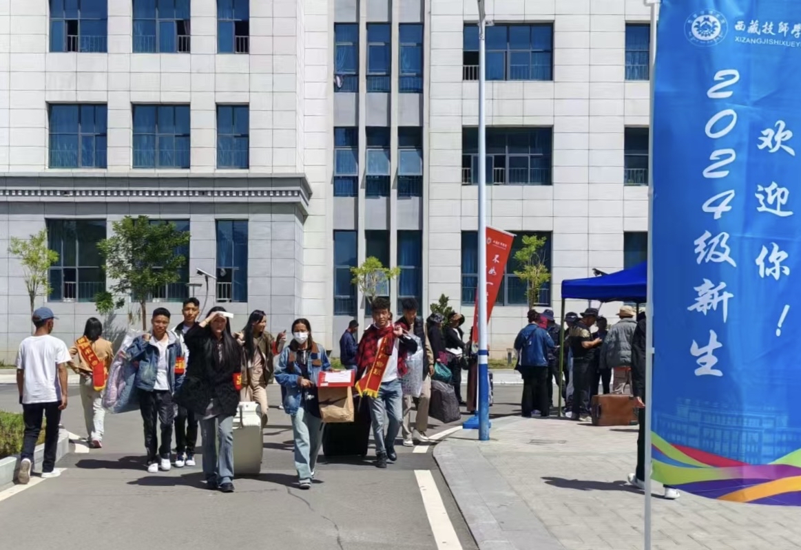 在西藏技師學(xué)院校園里,隨處可見(jiàn)“歡迎新同學(xué)”的標(biāo)語(yǔ)和展板,校園內(nèi)還設(shè)置了立體合影展臺(tái)供學(xué)生留影,營(yíng)造出了濃濃的暖心氛圍。學(xué)生和家長(zhǎng)們帶著大包小包的行李,秩序井然地進(jìn)入校園,找到所錄取專業(yè)報(bào)到點(diǎn)前完成入學(xué)手續(xù),各班班主任都等候在報(bào)到點(diǎn),耐心地回答學(xué)生們的疑問(wèn)、專業(yè)學(xué)習(xí)情況、體檢和助學(xué)金的申請(qǐng)等問(wèn)題。