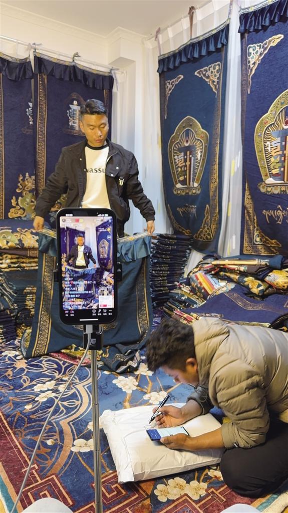 此后,為提升直播效果,格桑平措團隊認(rèn)真總結(jié)經(jīng)驗教訓(xùn),不斷學(xué)習(xí)直播技巧,深入研究產(chǎn)品賣點,從吸引觀眾、介紹產(chǎn)品到處理售后問題,每個環(huán)節(jié)都認(rèn)真鉆研。同時,他們精心策劃每一場直播,不僅詳細(xì)介紹產(chǎn)品,還講述產(chǎn)品背后的文化故事,力求講解生動有趣,吸引了不少粉絲關(guān)注。在一次次的嘗試和努力下,藏式門簾在電商平臺上逐漸打開知名度,銷量穩(wěn)步增長,突破了2000單。面對取得的銷售成績,格桑平措也在不斷思考:“直播帶貨不僅拓寬了產(chǎn)品銷路,更重要的是,通過直播我們能與消費者實時互動,了解他們的需求和反饋,從而持續(xù)優(yōu)化產(chǎn)品和服務(wù),讓我們的創(chuàng)業(yè)之路走得更穩(wěn)?!背辈ж浲猓裆F酱雸F隊還借助短視頻平臺和社交媒體平臺,發(fā)布產(chǎn)品信息,制作精美的宣傳視頻,吸引了更多潛在客戶的目光。