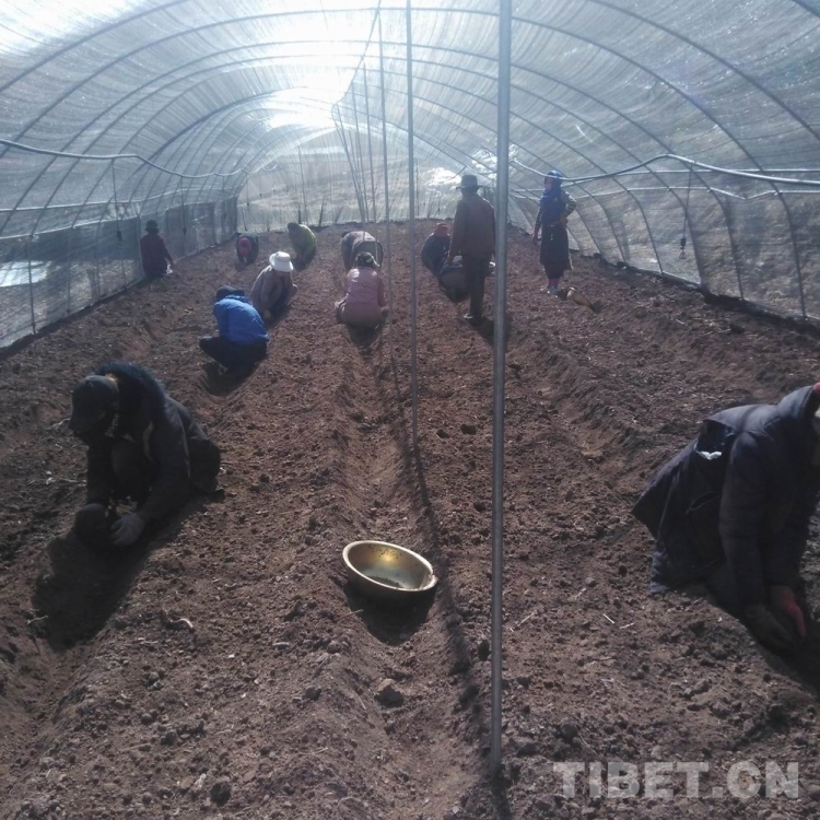 中國西藏網訊 3月15日,在四川省甘孜藏族自治州理塘縣絨壩鄉(xiāng)拉吾村羊肚菌種植大棚里,村民們正忙著撒播菌種和澆水。