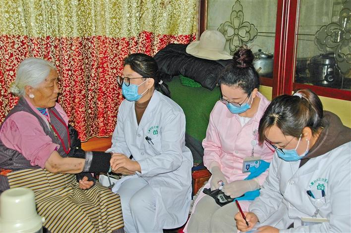 圖為家庭簽約醫(yī)生到拉薩繞賽居委會(huì)五保戶益西曲珍家中上門服務(wù)。記者 曉勇 攝