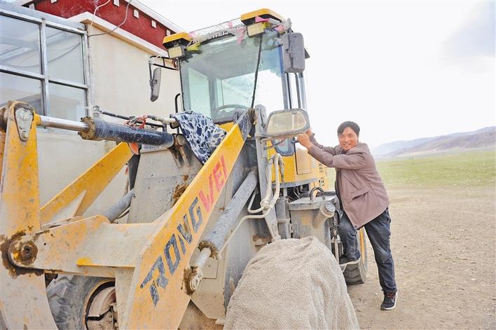 申扎縣買巴鄉(xiāng)扎瓊?cè)逯赂荒苋藲W珠和他的致富“伙伴”——裝載機(jī)。