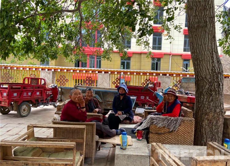 走出寨子,在村頭的大樹(shù)下有四位老人喝著甜茶聊天。
