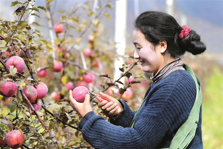 日前,西藏林芝市晚熟蘋果喜獲豐收,當(dāng)?shù)剞r(nóng)牧民在果園忙著采摘蘋果。據(jù)悉,西藏林芝市栽種蘋果約3.78萬畝,預(yù)計全年產(chǎn)量可達1.5萬噸,產(chǎn)值1.7億元。[詳細] -