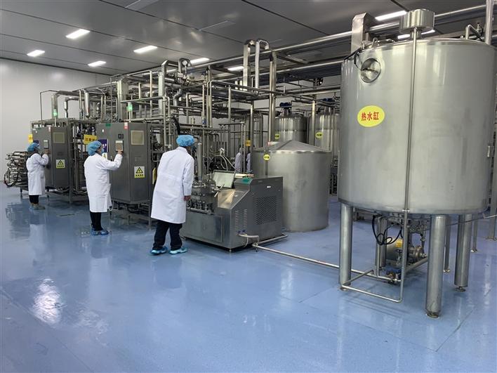 圖為工作人員在奶制品加工設(shè)備間操作機(jī)器設(shè)備。記者 張宇 曲珍 攝