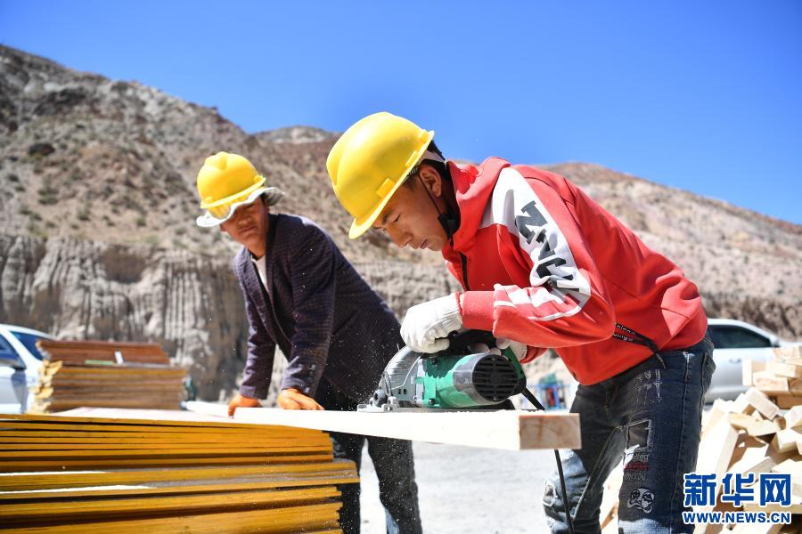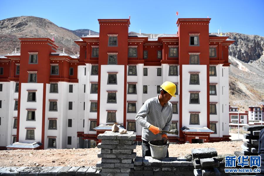 西藏昌都市八宿縣吉達鄉(xiāng)仲沙村村民平措,在八宿縣西巴易地扶貧搬遷安置點的工地上勞作(5月10日攝)。2019年,平措和家人搬遷到西巴易地扶貧搬遷安置點,住進了75平方米的新居。平措還在安置點找到了一份建筑工的工作,每個月有4000多元的收入。新華社記者 詹彥 攝