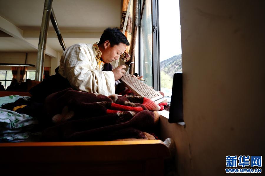 在西藏昌都市江達縣波羅鄉(xiāng)木松民族手工藝有限責任公司,波羅鄉(xiāng)村民白瑪加村在制作木刻(5月1日攝)。白瑪加村2017年開始學習波羅木刻,如今已經(jīng)出師,成為一個熟練的木刻藝人,一個月能制作6塊木刻作品,每個月有4000多元的收入。新華社記者 詹彥 攝