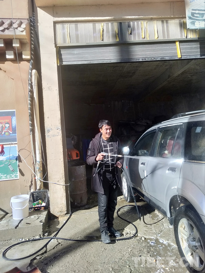 位于理塘縣城國道318沿線替然色巴活動中心旁,格聶神山洗車店生意紅火。因為洗得干凈,服務(wù)態(tài)度好,價格合理,一傳十,十傳百,前來洗車的人絡(luò)繹不絕。