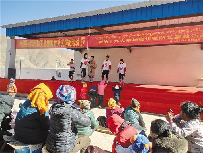 西熱組織大學(xué)生在基層開(kāi)展防治艾滋病公益宣傳和文藝演出活動(dòng)。