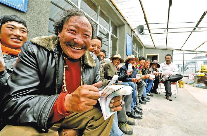 領(lǐng)到安居工程財(cái)政補(bǔ)助金的安多縣扎仁鎮(zhèn)牧民。