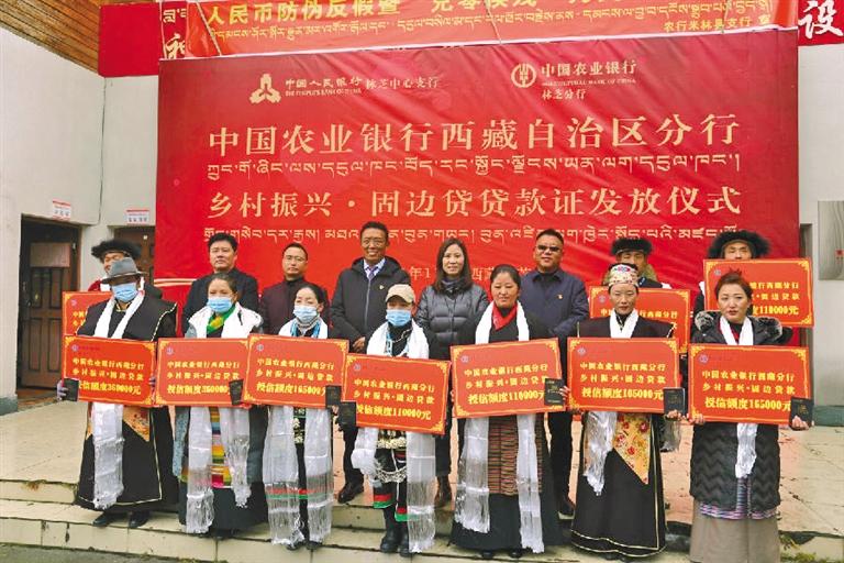 近日,人行林芝市中心支行與農(nóng)行林芝市分行在米林縣南伊村舉行“鄉(xiāng)村振興·固邊貸貸款證發(fā)放儀式”,為該村45戶(hù)農(nóng)牧民群眾發(fā)放“鄉(xiāng)村振興·固邊貸”貸款證,共授信709萬(wàn)元。