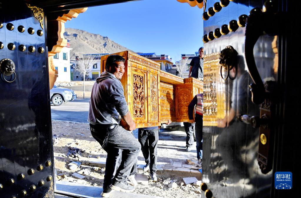 次旺堅(jiān)參正往新家搬家具。 新華社記者 張汝鋒 攝