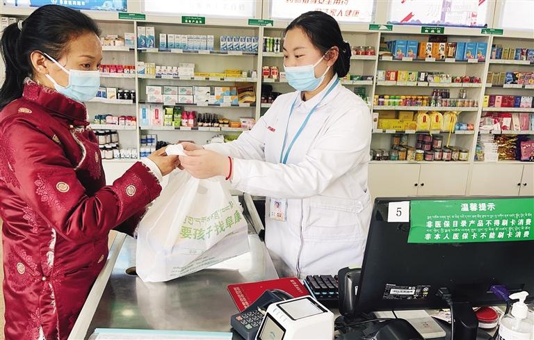市民在定點(diǎn)藥店刷卡購藥。記者 趙越 攝