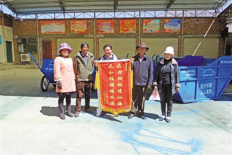 仁欽蔡村村委會(huì)向馬哈哈送錦旗。