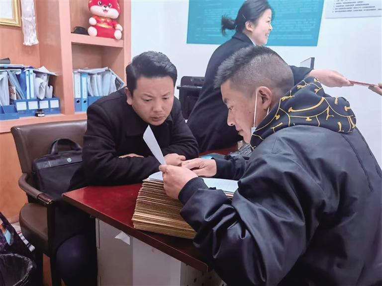 人行拉薩中支工作人員給市民講解貸款業(yè)務(wù)流程。