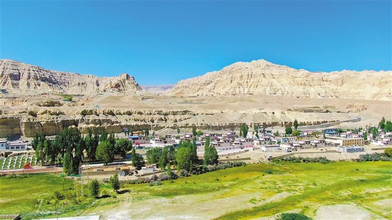 旭日初升,金黃的陽光遍灑這座幸福村落,村民們迎著朝陽,又開始了一天忙中有序的生活,遠處赫然矗立的古格王國遺址默默注視,見證著這里的華麗蝶變。