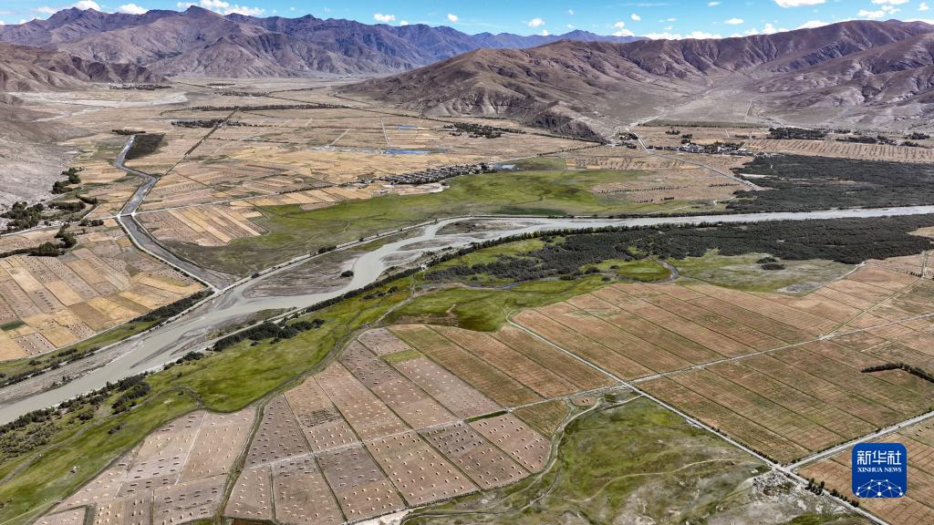 年楚河流域西藏日喀則江孜段富饒的農(nóng)田(9月19日攝 無(wú)人機(jī)照片)。