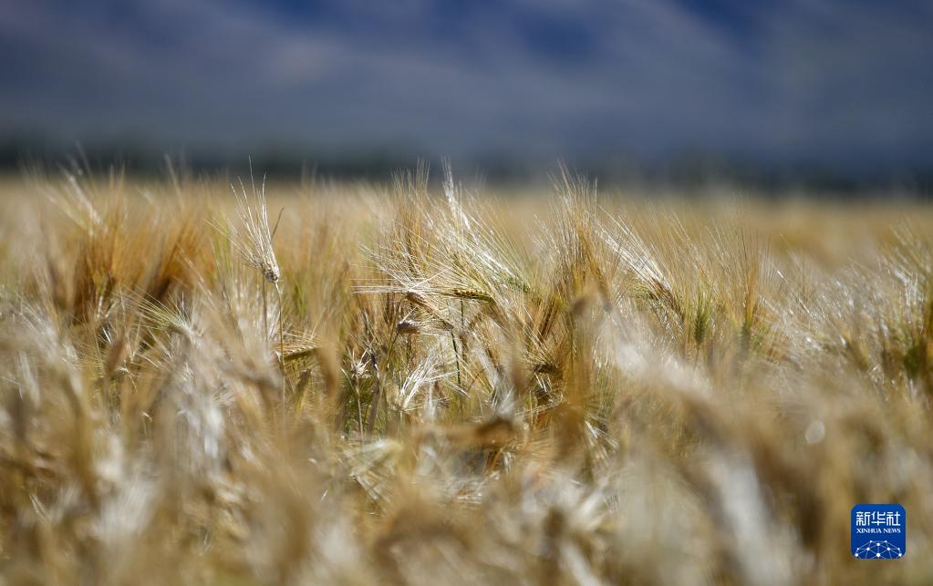 西藏日喀則市江孜縣熱索鄉(xiāng)努康村碩果累累的青稞(9月19日攝)。