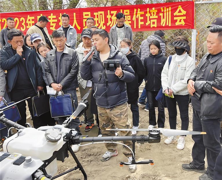 圖為授課老師在講解演示植保無人機(jī)結(jié)構(gòu)特點(diǎn)和操作要點(diǎn)。記者 扎西頓珠 汪純 攝