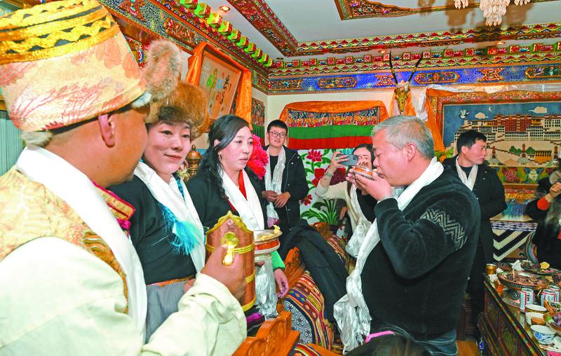 圖為游客在拉薩市城關區(qū)奪底街道維巴村體驗藏家生活。記者 唐斌 攝