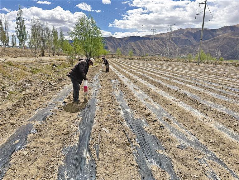 回憶起剛開荒時的情形,洛珠達(dá)瓦說:“我們每天組織公司全體職工和村民30多人,以及多臺挖掘機(jī)、破石機(jī)、拖拉機(jī)等機(jī)械設(shè)備,連續(xù)工作了1個多月。地底石頭較多,機(jī)械設(shè)備用壞了好幾臺。即使對土地進(jìn)行了多次翻耕,但土地沙化依然嚴(yán)重,無法種植莊稼?!?/p>