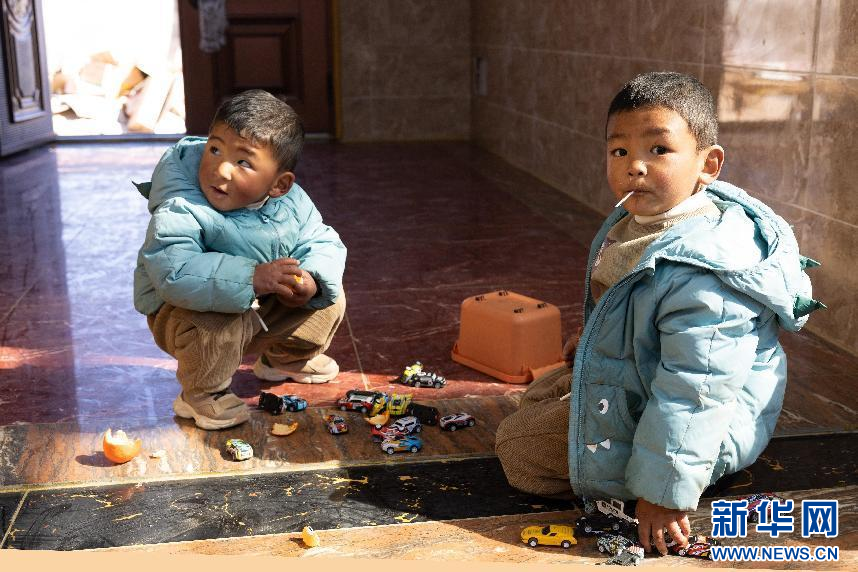 村民貢嘎是克日村第二批“美麗鄉(xiāng)村·幸福家園”建設(shè)行動(dòng)計(jì)劃的參與者,翻新房子70%的費(fèi)用由當(dāng)?shù)卣a(bǔ)貼,自己只需支付30%,如今房屋已改造完畢,一家子正式入住。孫子們?cè)诠鉂嵉牡孛嫱嫠?,和煦的?yáng)光從屋頂?shù)年?yáng)光棚照進(jìn)客廳,溫暖了整個(gè)冬天。