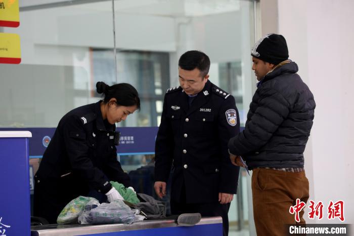 1月30日,在樟木口岸負責(zé)旅檢通關(guān)等工作的執(zhí)勤一隊民警們吃過早飯,在副隊長段秋宇的帶領(lǐng)下,正在整理著裝,檢查驗訖章,準備開始一天的勤務(wù)工作。安排好勤務(wù)的副隊長段秋宇帶領(lǐng)其他民警急忙趕往口岸限定區(qū)的商戶,開展排查工作。