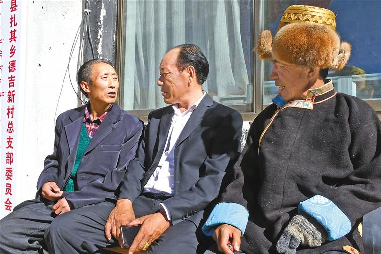 德吉新村村民丹增一身黑氆氌藏裝、頭戴“次仁金廓(金絲帽)”,操著一口地道的扎囊方言,要不是村里人的介紹,誰也看不出他其實(shí)并非“藏家大叔”。