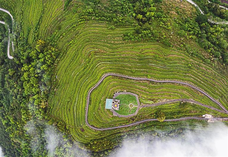 墨脫縣背崩鄉(xiāng)格林村茶園(無(wú)人機(jī)照片)。新華社記者 姜帆 攝